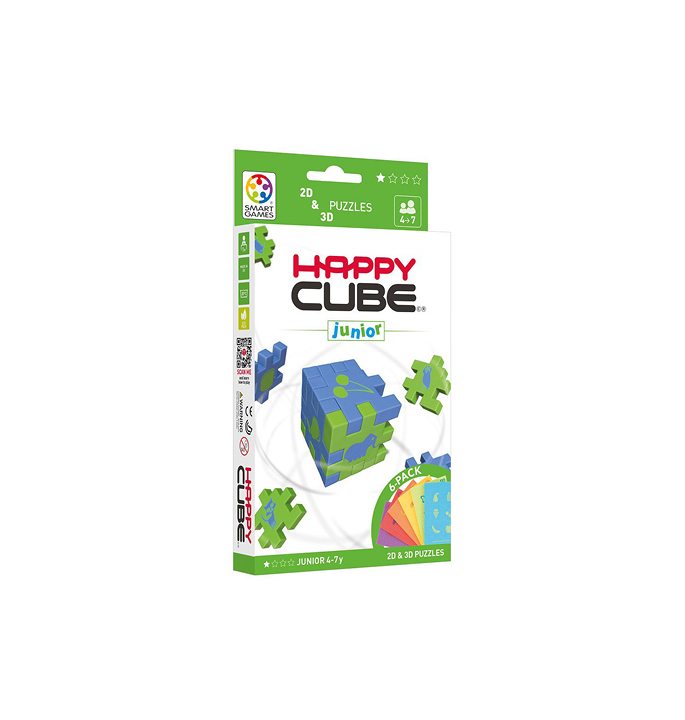 Happy Cube Junior is specifiek ontworpen voor de jongste spelers vanaf 4 jaar en blinkt uit als de meest eenvoudige variant binnen de Happy Cube collectie. Elk stukje van de puzzel toont een uniek en eenvoudig herkenbaar symbool, wat een positieve invloed heeft op de taalontwikkeling! Daarnaast stimuleert deze Smartgame op een speelse manier het logisch, creatief en probleemoplossend denken. Elk van de zes puzzels biedt unieke uitdagingen en heeft verschillende oplossingen. Bovendien kan je met de puzzelstukjes een perfecte kubusvorm van 4 cm creëren. Begin met het samenstellen van een kubus met behulp van de zes stukjes en plaats ze nadien weer terug in hun oorspronkelijke kader. Ben je een meester geworden in het bouwen van kubussen? Fantastisch gedaan! Dan is het nu tijd om alle kubussen opnieuw in hun kader te plaatsen. En alsof dat nog niet genoeg is, kunnen alle puzzels met elkaar gecombineerd worden om gigantische constructies te bouwen. Laat je fantasie de vrije loop terwijl je verschillende vormen en structuren van deze Breinbreker creëert. Met Happy Cube Junior is er geen grens aan plezier en spelenderwijs leren. Geschikt vanaf 4 jaar.