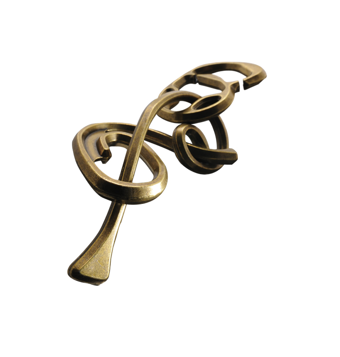 Puzzel van Eldon Vaugh, gepatenteerd in Amerika in 1975. De gewervelde delen van deze breinbreker moeten uit elkaar gehaald worden en dan weer terug in elkaar. Er is een twintigtal jaar geleden een wat kleinere versie van deze puzzel in Amerika op de markt gekomen, maar beschouwde deze toen als onoplosbaar. Toen kwam er een nieuwe versie in licentie voor de “Huzzle Cast Puzzle” reeks gemaakt met behoud van de moeilijkheid van het originele model. Dit is zonder twijfel één van de allermoeilijkste. Het sleutelwoord is “draai”. Gebruik niet te veel kracht, de delen moeten uit elkaar glijden.