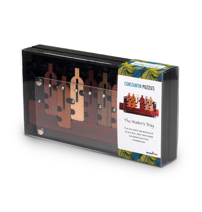Kannst du die Flaschen so manövrieren, dass der Kellner sein Tablett darunter hervorholen kann? Ein lustiges und anspruchsvolles Rätsel von Constantin.