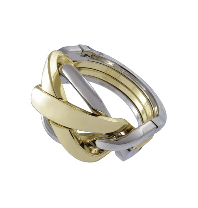 Dieses Puzzle basiert auf einem Original namens „Puzzle Ring“. Im 15. Jahrhundert war dieser Ring sehr beliebt und wurde meist als offizieller Verlobungs- oder Hochzeitsring verwendet. Auch der Kirchenreformator Martin Luther soll einen solchen Ring getragen haben. Dieser Ring wurde manchmal sogar als Beweis für Ehebruch angeführt, wenn er getrennt wurde. In diesem kleinen Rätsel steckt also eine Menge Geschichte.