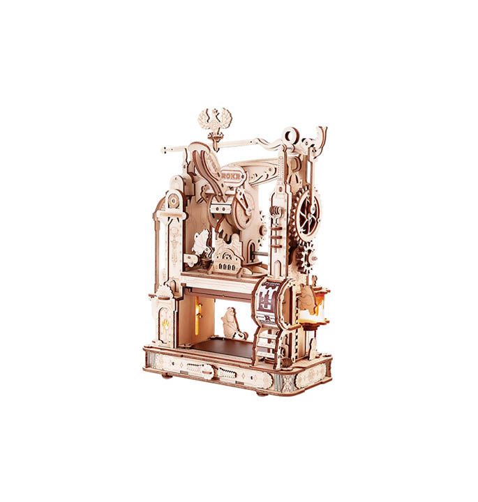 Lassen Sie den 3D-Drucker stehen und entscheiden Sie sich für diese handwerkliche Druckpresse. Es ist kaum zu glauben, dass dieser Bausatz für Erwachsene eine funktionierende Miniatur-Holzpresse enthält. Nur ROKR, die führende Marke im Bereich mechanischer Holzbaukästen, kann sich so etwas Einzigartiges einfallen lassen. Dieser Baukasten steckt voller Überraschungen, mit Zahnrädern, Schnörkeln, Hebeln und anderen Details, die Sie zum Staunen bringen werden. Niedliche Bären, die sich bewegen, leuchtende Lichter und schöne Dekorationen wie das Astrolabium machen diese Druckmaschine zu einem echten Schmuckstück. Eine kreative Ergänzung für Ihr Interieur! Die Montagezeit der Robotime Classic Printing Press LK602 wird auf 5 Stunden geschätzt. Diese Packung enthält 303 Stück.
