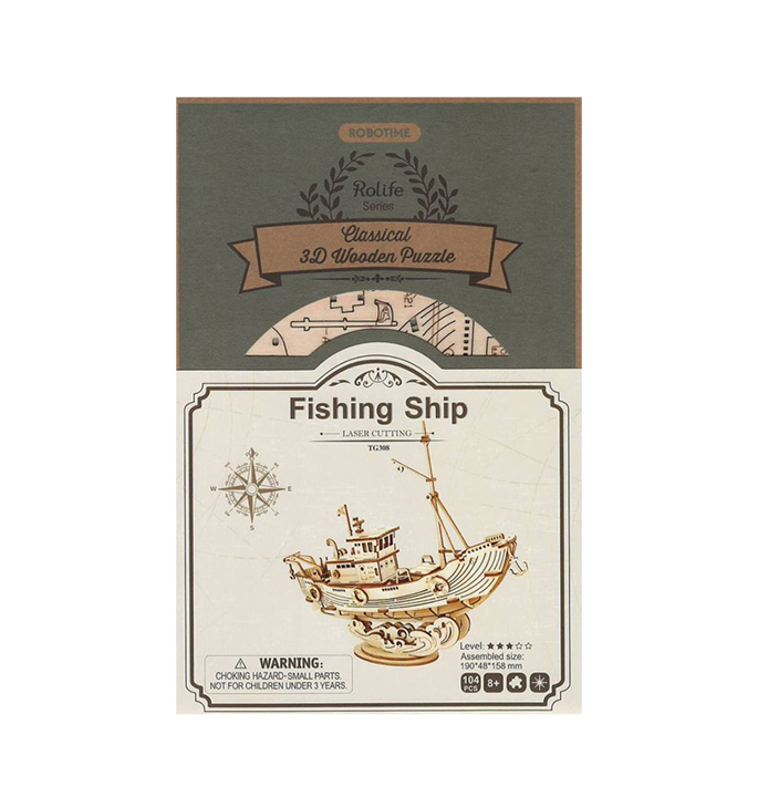 Robotime Modernes 3D-Fischereischiff aus Holz TG308