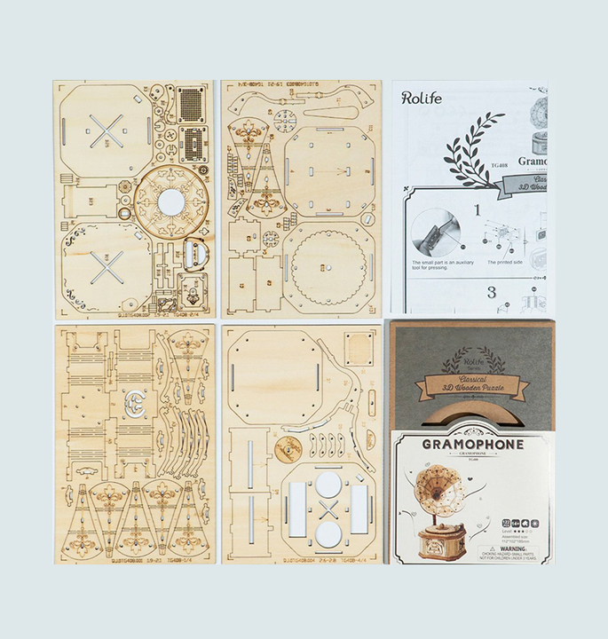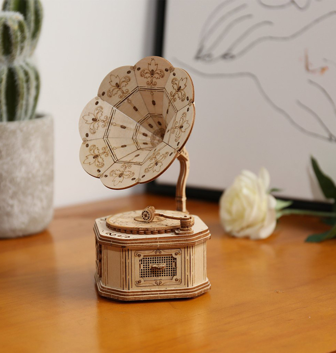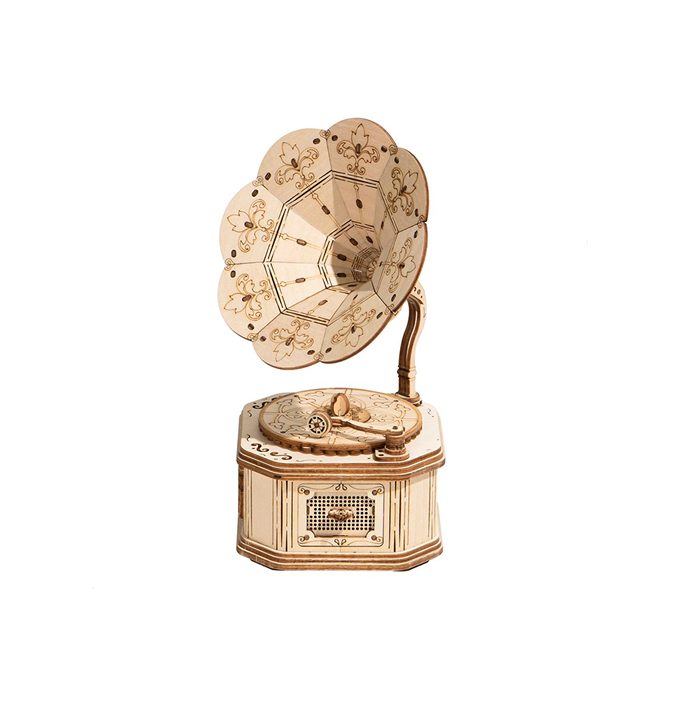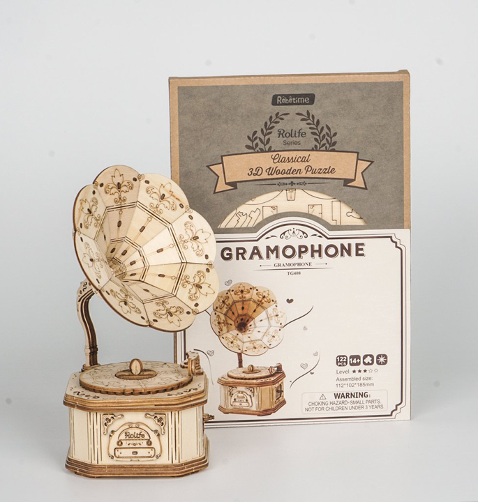 Robotime Modernes 3D-Grammophon aus Holz TG408