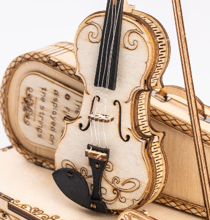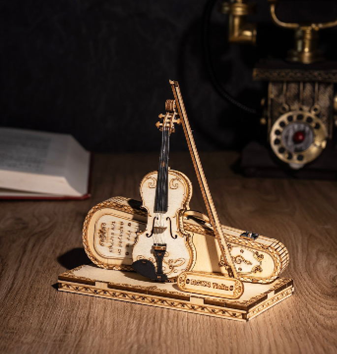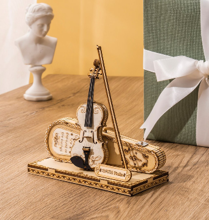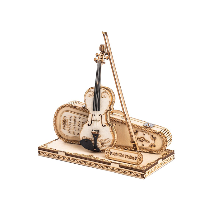 Robotime-ROKR Violin Capriccio 3D Holzpuzzle TG604K ist ein gut gestaltetes Holzgeigenmodell, das Sie mit Ihren eigenen Händen bauen können. Dieses Modell ist eine maßstabsgetreue Nachbildung der klassischen Violine. Mit einfachen Linien, die die Form des Instruments umreißen, konkav und geschnitzt, um die künstlerische Atmosphäre zu unterstreichen, exquisit und stilvoll! Ich wünsche Ihnen viel Spaß beim Abspielen der Musik und hoffe, dass die schöne Musik Ihre Trauer lindern und glückliche Erinnerungen wecken kann!