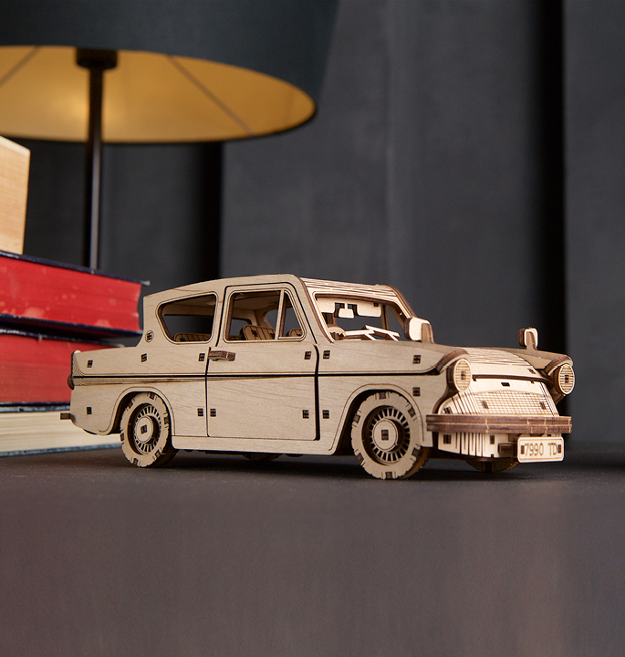 Ugears freut sich, Harry-Potter-Fans ein einzigartiges Automodell anbieten zu können: den Flying Ford AngliaTM, ein Auto mit eigenem Willen. Der Anglia ist eine originalgetreue Nachbildung des verzauberten Muggelautos Weasel. Die Kinder werden Spaß daran haben, mit ihm durch die Luft zu fliegen oder so zu tun, als ob sie mit ihm auf einer Strecke direkt vor dem Hogwarts-Express fahren. Wer hat die Szene in Harry Potter und die Kammer des Schreckens vergessen, als Harry und Ron im Anglia zurück nach Hogwarts fliegen, bevor sie die Kontrolle verlieren und in der Beech Willow notlanden müssen? Nachdem sie knapp entkommen sind, werden die jungen Magier und ihr gesamtes Hab und Gut von dem Auto herausgeschleudert, das sich über den Missbrauch ärgert, den es erfahren hat.