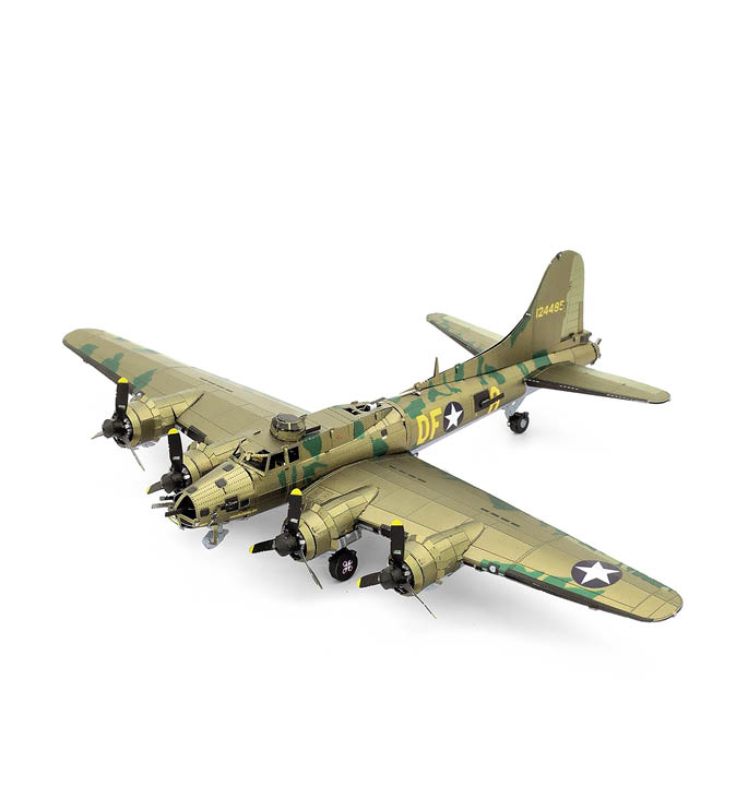 Die B-17 Flying Fortress war ein leistungsstarker Bomber, der während des Zweiten Weltkriegs eingesetzt wurde. Dank ihrer leistungsstarken Triebwerke konnte sie in großen Höhen fliegen und blieb so außerhalb der Reichweite der feindlichen Flugabwehrkanonen. Dieses Modell besteht aus 2,5 Blättern.