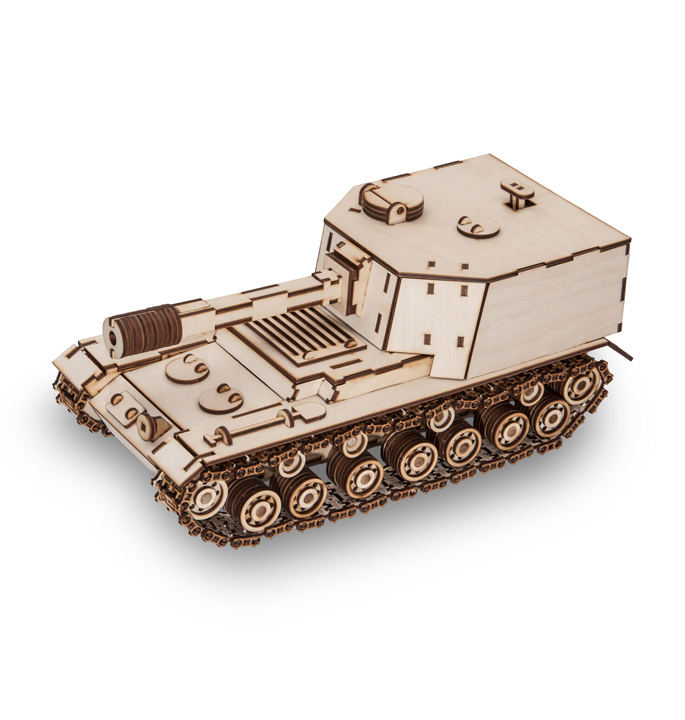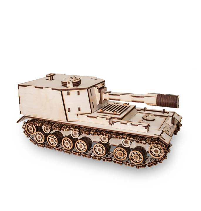 Dies ist ein Holzmodell des sowjetischen motorisierten Geschützes – Objekt 212. Es handelt sich um ein Raupenmodell der Militärartillerie, das mit einem Artillerieturm, beweglichen Luken und rollenden Rädern ausgestattet ist. Für dieses Produkt wird Klebstoff benötigt, der jedoch nicht im Lieferumfang enthalten ist.