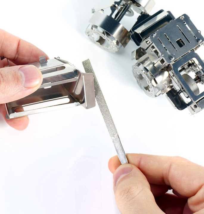 Dieses Set aus Mini-Zangen und Feilen aus Stahl eignet sich perfekt für kleine Heimwerkerarbeiten: Modellbausätze, Automodelle, kleine Reparaturen, Bastelarbeiten. Sie sind einfach zu handhaben, leicht und tragbar und können überallhin mitgenommen werden, um kleine Reparaturen vorzunehmen oder Zeit mit dem Bau von Modellbausätzen, der Befestigung kleiner Mechanismen oder Spielzeugen zu verbringen. Der Griff besteht aus Kunststoff und ist so konzipiert, dass er auch über längere Zeiträume hinweg leicht zu benutzen ist. Die Metallteile bestehen aus Stahl und sind langlebig und strapazierfähig.