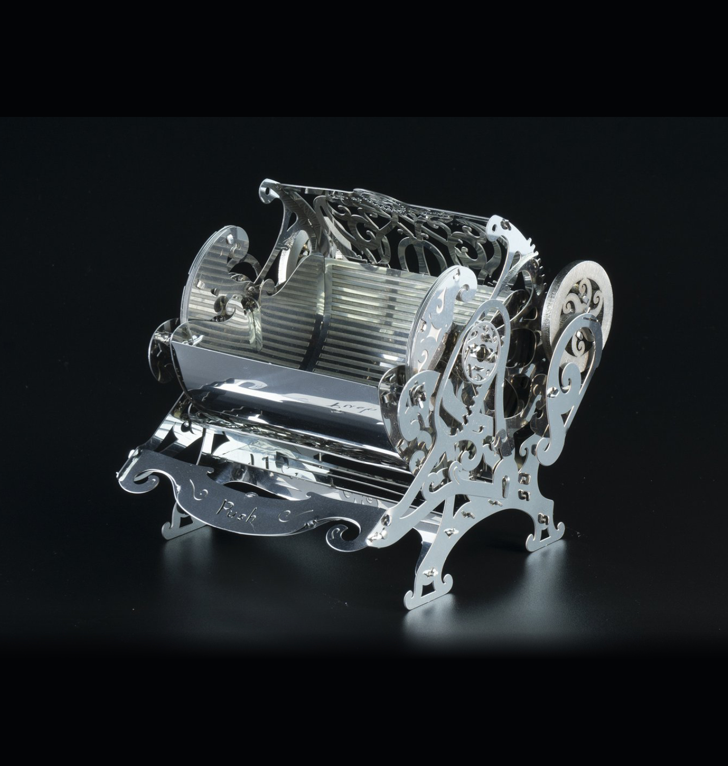 Ganz gleich, was Sie dort aufbewahren, Schmuck oder einige wertvolle Erinnerungen. Der Punkt ist, dass alle Ihre Geheimnisse nur Ihnen gehören sollten. Ein leichter Druck genügt, um den Mechanismus in Gang zu setzen und die Räder in Bewegung zu setzen. Der Deckel schließt sich leicht unter seinem eigenen Gewicht.