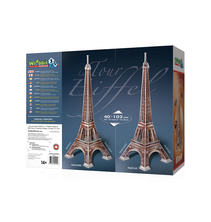 Oui, oui, Paris! Was wäre die „Stadt der Lichter“ ohne den Eiffelturm, der in unserer 816-teiligen Nachbildung so perfekt dargestellt ist? Diese 3D-Puzzle-Herausforderung entführt dich nach Paris. Spazieren Sie an der Seine oder am Champ de Mars entlang, genießen Sie einen Café au lait und ein Baguette oder besteigen Sie dieses ikonische Wunderwerk aus Stahl und Kraft!