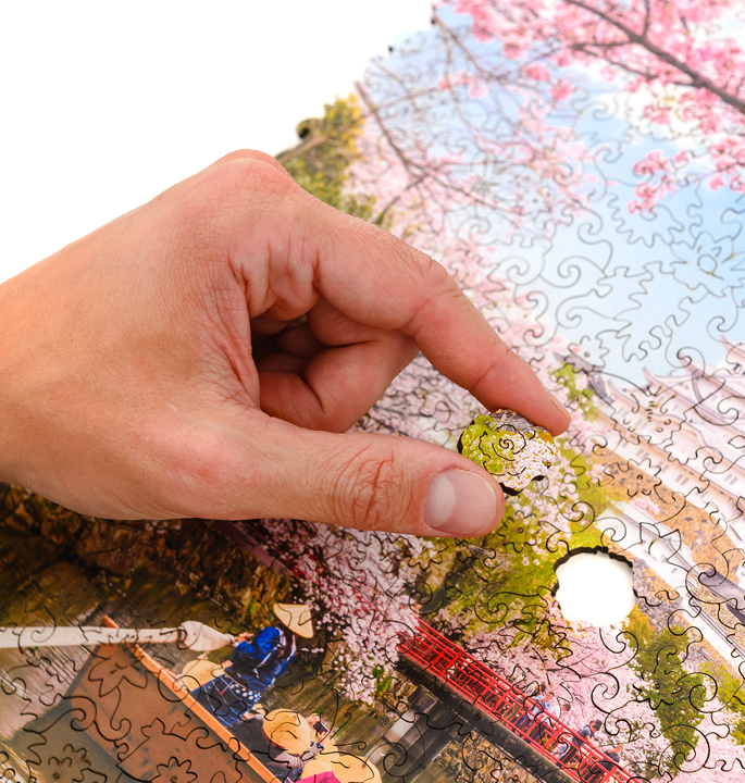Mit der neuen Linie von Unidragon werden Sie sich ganz anders fühlen. Das Sakura-Figurenpuzzle eröffnet die Serie Natur. Dieses Mosaik vereint eine völlig neue Form und alte Traditionen. Die Schmetterlinge, Blumen und Häuschen ergänzen das schöne Bild der blühenden Sakura und eines morgendlichen Spaziergangs am Fluss. Jedes Detail hat seine eigene, einzigartige Form. Und das Fehlen von glatten, abgeschnittenen Rändern auf dem Bild erschwert das Puzzeln und macht es zu einer lustigen Herausforderung. Eine spannende Reise in das Land der untergehenden Sonne erwartet Sie mit dem neuen Sakura Nature Puzzle.