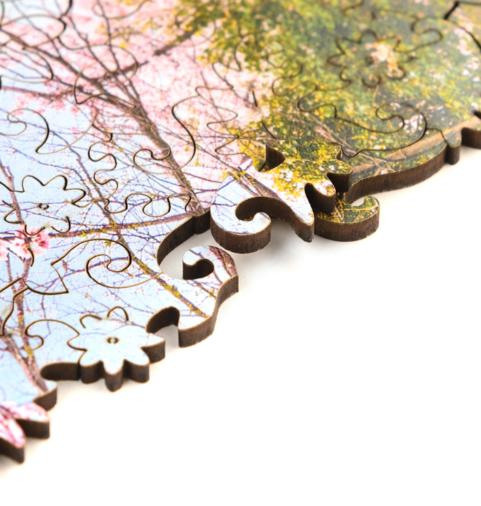 Die Puzzles sind aus 3 mm starkem, gepresstem HDF gefertigt. Dieses Material ist umweltfreundlich, hochwertig und langlebig. Wenn du mit dem Zusammensetzen fertig bist, darfst du das Puzzle nicht zurück in den Schrank legen. Verwenden Sie es als Innendekoration! Zu diesem Zweck haben wir ein spezielles Klebesystem entwickelt, das das Puzzle zusammensetzt und an die Wand klebt.