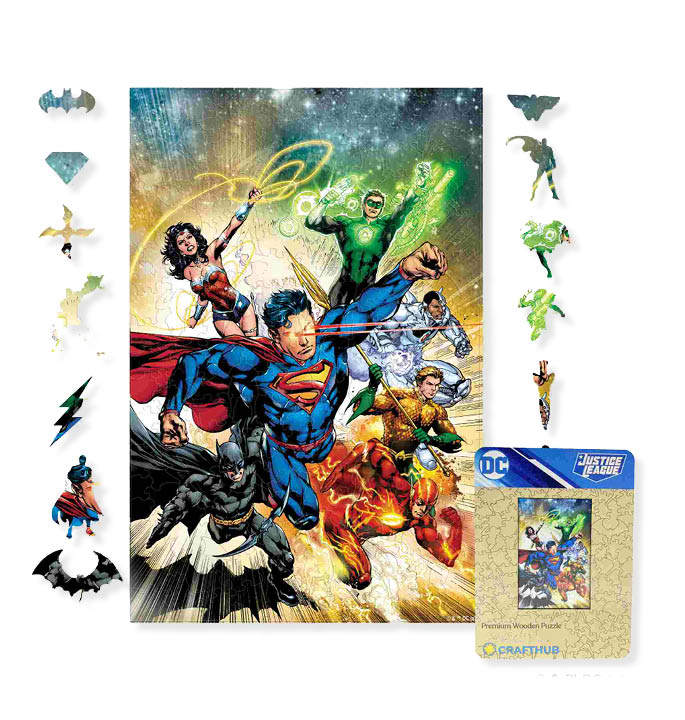 Das Crafthub Justice League Heroes Puzzle ist ein anspruchsvolles Puzzle aus Holz mit 163 Teilen. Das Puzzle zeigt die ikonische Gerechtigkeitsliga von DC Comics in Aktion, mit Helden wie Batman, Superman und Wonder Woman, die gegen das Böse kämpfen. Ein Muss für Fans von Superhelden!