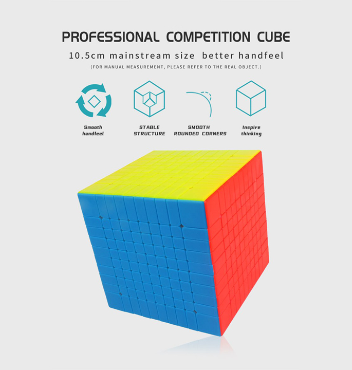 Der YuXin Little Magic 10×10 ist ein größerer, preiswerter 10×10. Läuft sehr flüssig und hat leuchtende Farben. Mit 107 mm ist der Little Magic 10×10 gewiss nicht klein und hat daher eine größere Oberfläche, die für manche vielleicht bequemer ist.