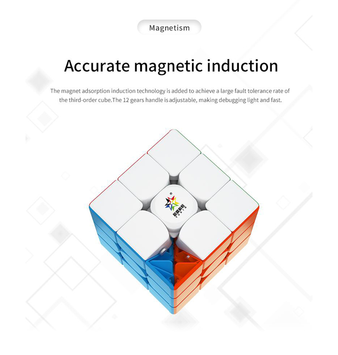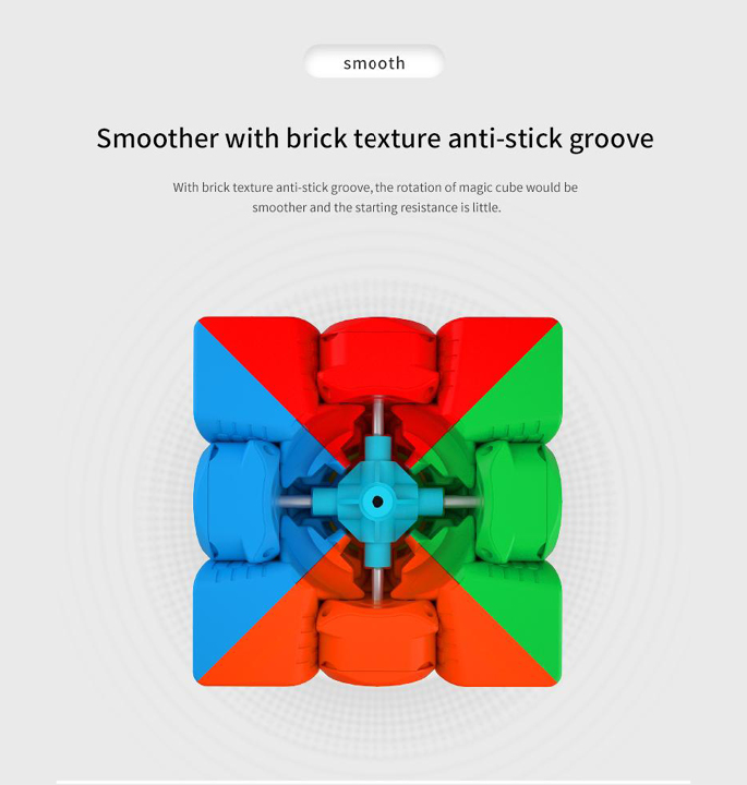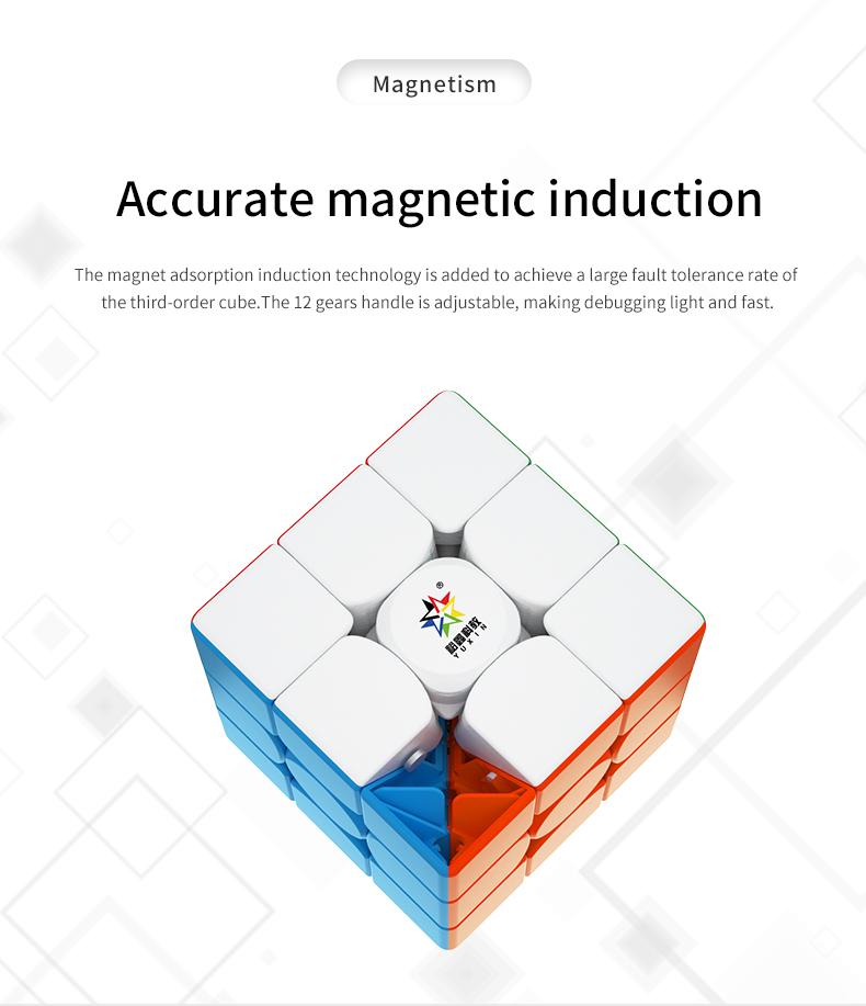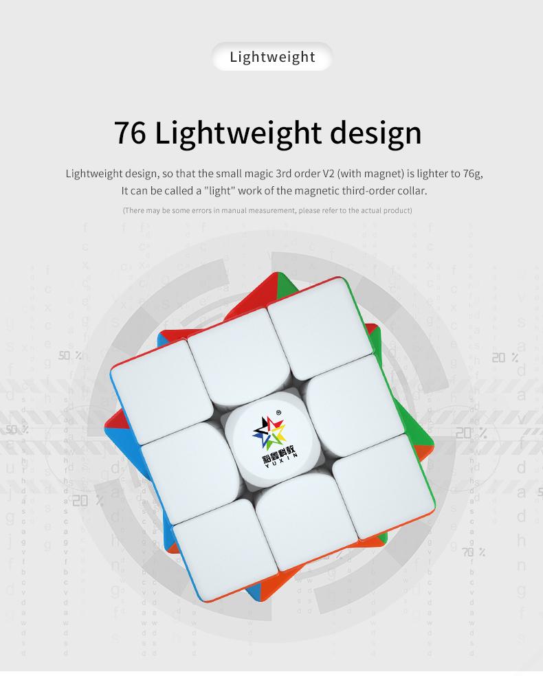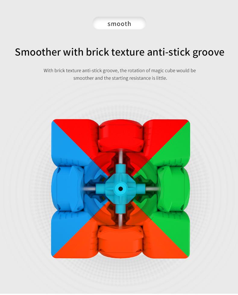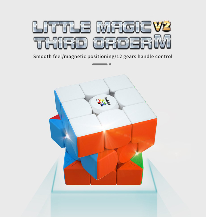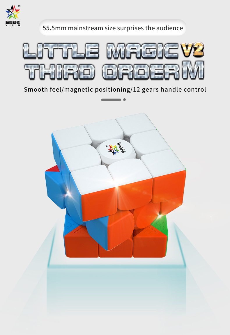 Der YuXin Little Magic 3×3 V2 M ist ein Update des 3×3. Mit einer „Ziegelsteinstruktur“ auf den Oberflächen, einer glänzenden Oberfläche und mittelstarken Magneten.