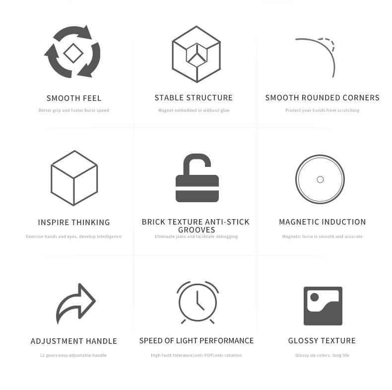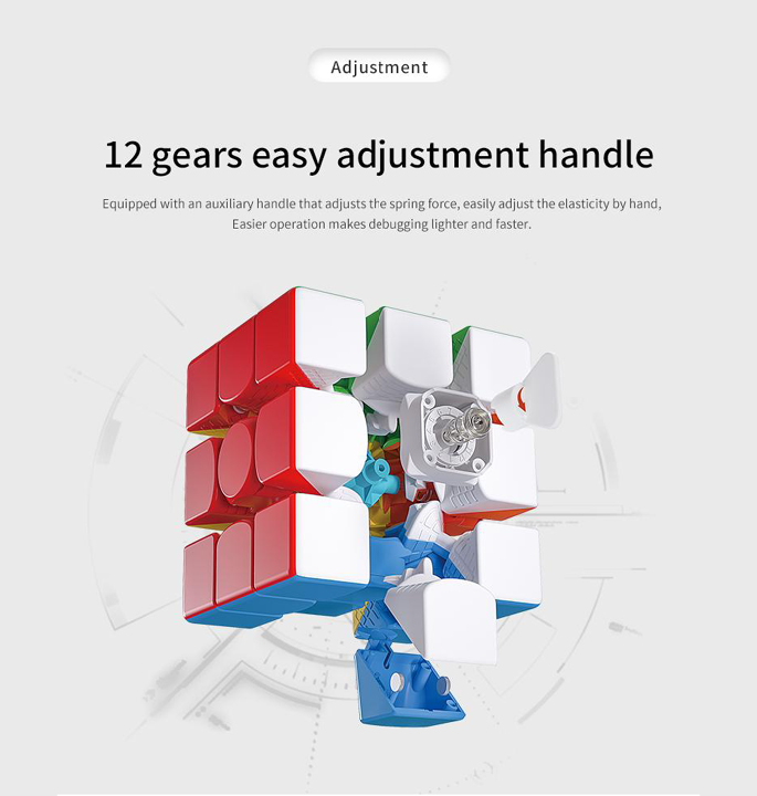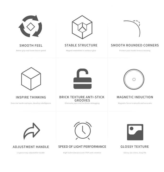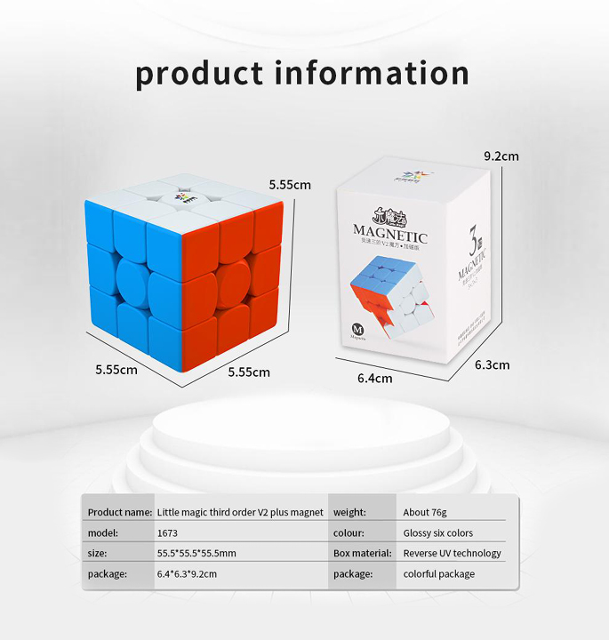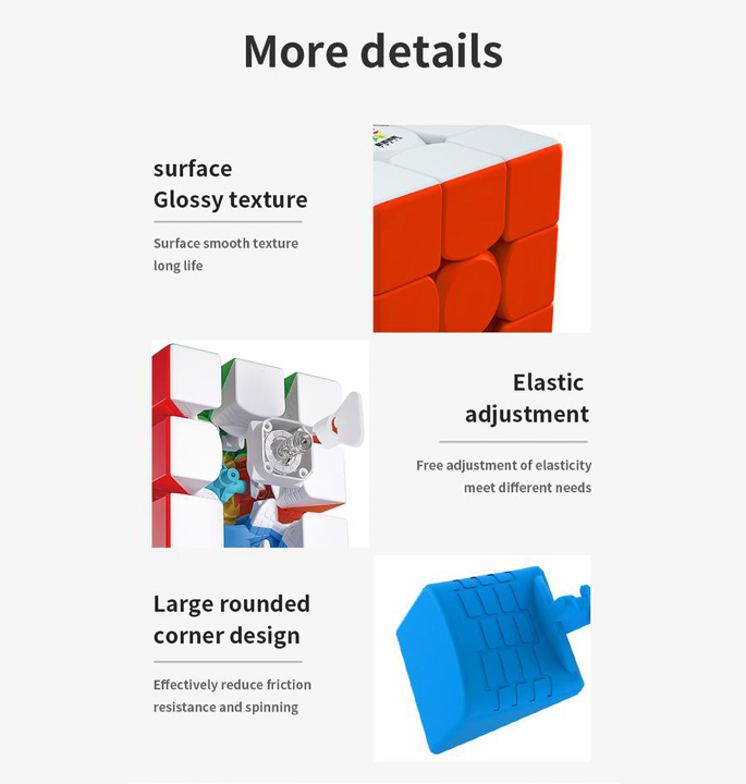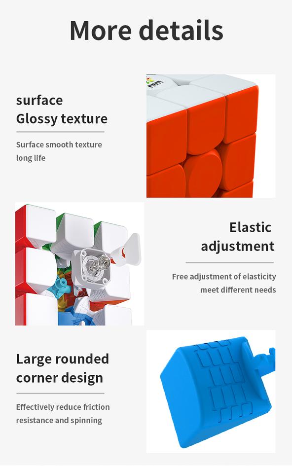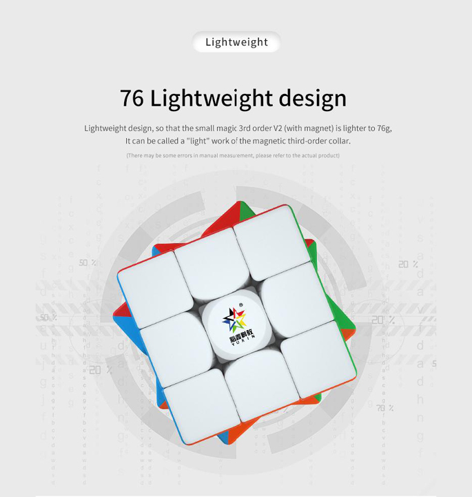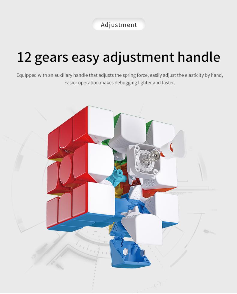 Der YuXin Little Magic 3×3 V2 M ist ein Update des 3×3. Mit einer „Ziegelsteinstruktur“ auf den Oberflächen, einer glänzenden Oberfläche und mittelstarken Magneten.