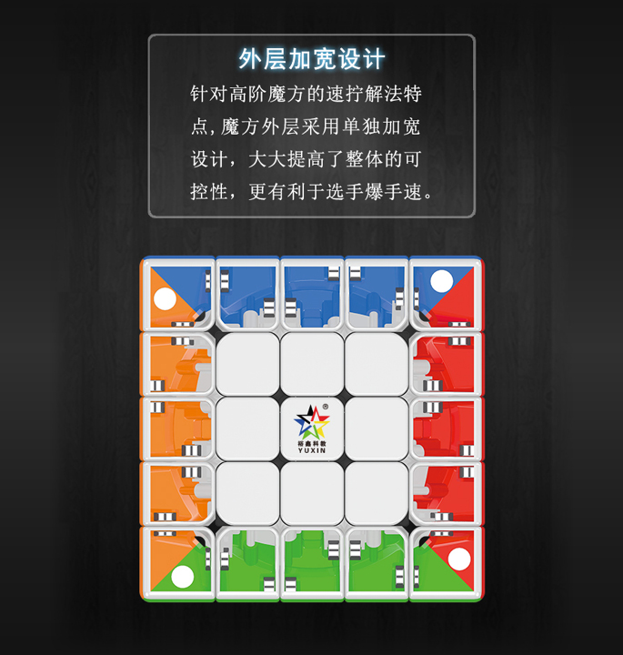 Der Yuxin Little Magic 5×5 M wurde speziell für Kunden entwickelt, die es groß und günstig mögen. Die Leistung des Yuxin Little 5×5 M ist hervorragend, er dreht sich leicht und die Magnete erzeugen eine leichte Anziehungskraft. Dieser 5×5 Speed Cube ist daher sowohl für Anfänger als auch für fortgeschrittene Würfelspieler sehr zu empfehlen.