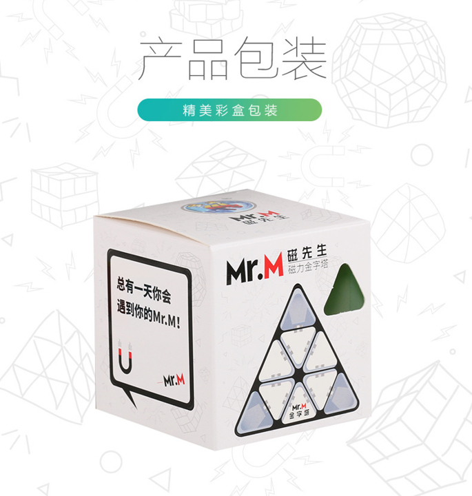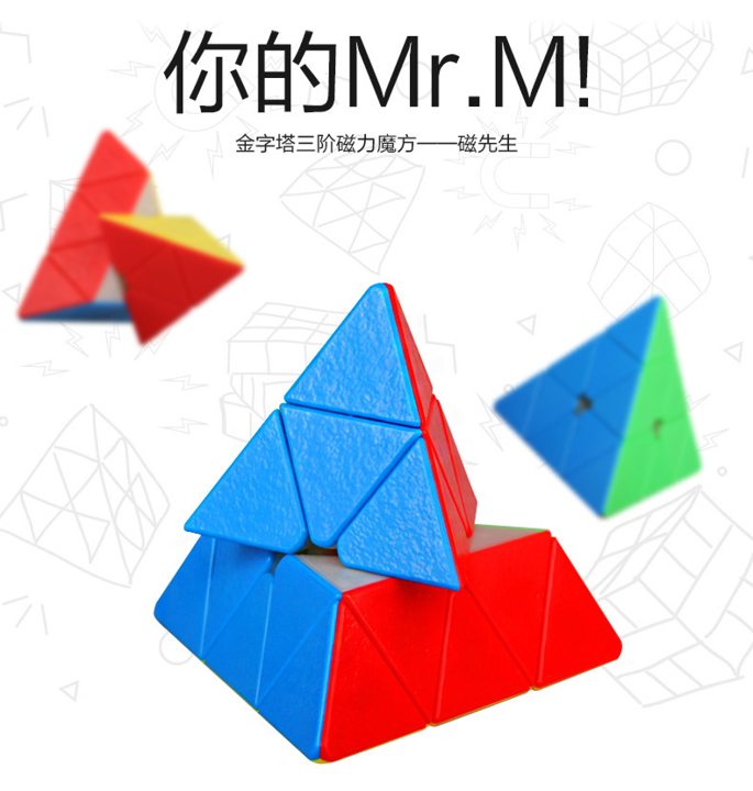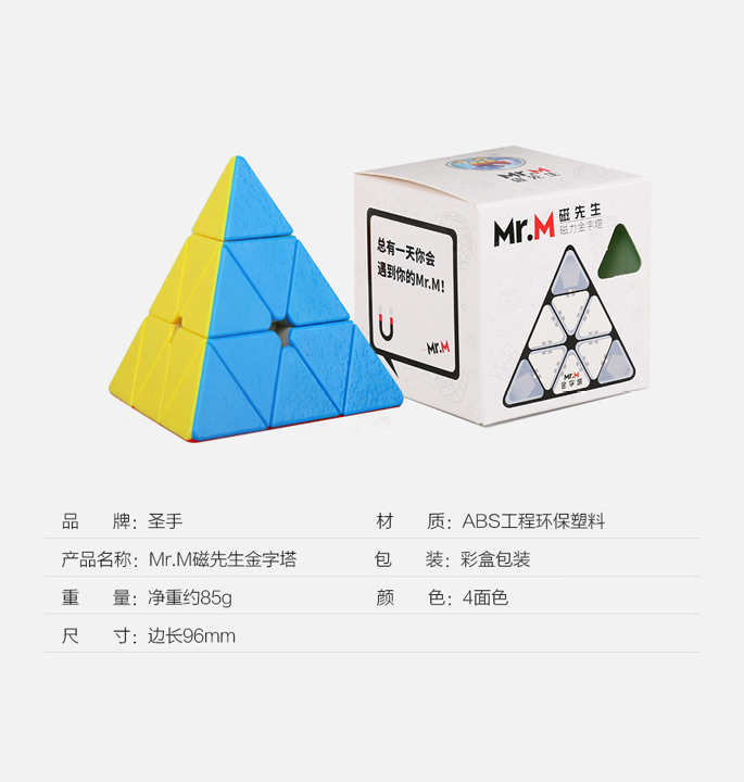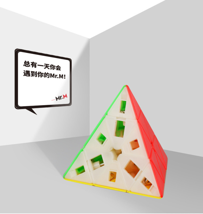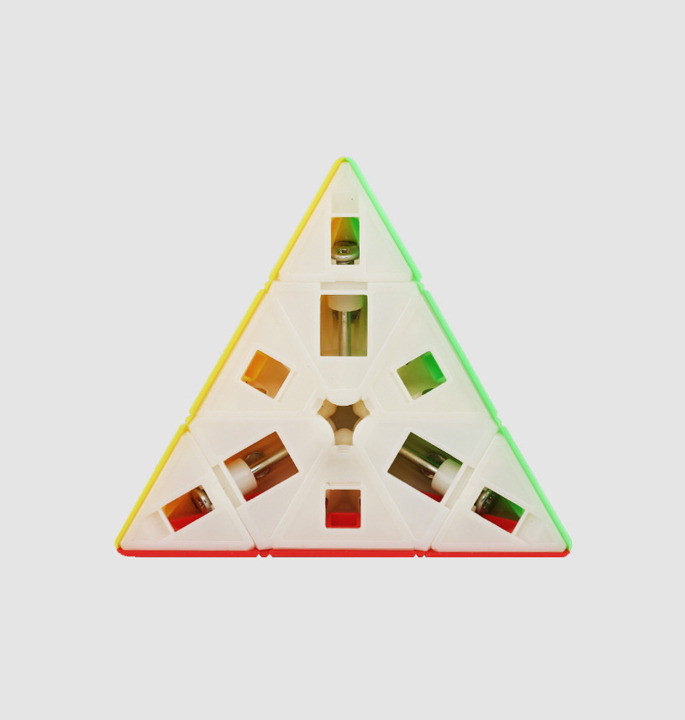 Das ShengShou MR. M Pyraminx ist größtenteils die magnetisierte Version des Edelstein-Pyraminx Speedcube. Aufgrund der rauen Oberflächen der MR. M Pyraminx Sie haben mehr Grip auf dem Speedcube. Auch dieser MR. M pyraminx hat sehr starke Magnete, die man spüren kann.