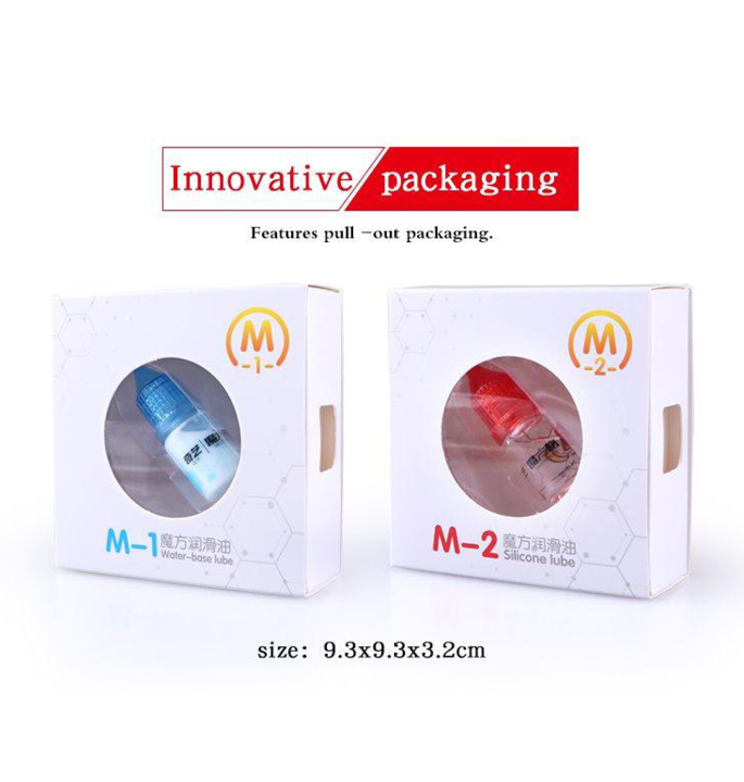 QiYi hat neue Schmierstoffe auf den Markt gebracht. Es gibt zwei verschiedene Versionen: die M1 (blaue Variante) und die M2 (rote Variante). M1 (blau) ist ein Gleitmittel auf Wasserbasis, um den Würfel zu beschleunigen, und M2 (rot) ist ein Gleitmittel auf Silikonbasis, das den Würfel geschmeidiger und besser handhabbar macht. Sie sind jeweils in 5ml-Flaschen erhältlich. Derzeit verkaufen wir nur die blaue Version.