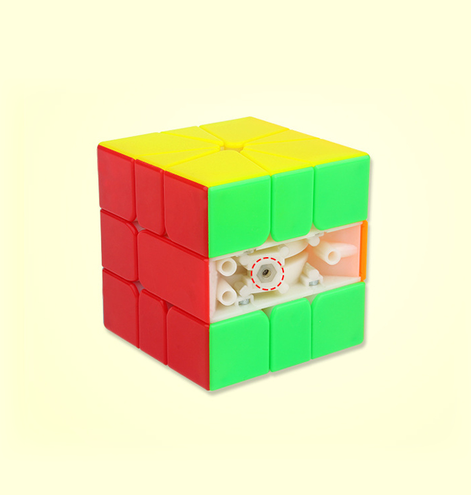 Der Yuxin Little Magic Square-1 M ist größer als sein Konkurrent. Mit 55 mm Breite und 57 mm Höhe ist er etwas größer als normal. Wenn Sie den Yuxin Little Magic Square-1 M aus der Verpackung nehmen, fühlt er sich robust und solide an. Trotz der Robustheit und Größe des Würfels ist seine Leistung hervorragend. Ausgestattet mit bis zu 28 winzigen Magneten ist das Square-1 M das erste seiner Art, das direkt aus der YuXin-Fabrik kommt.