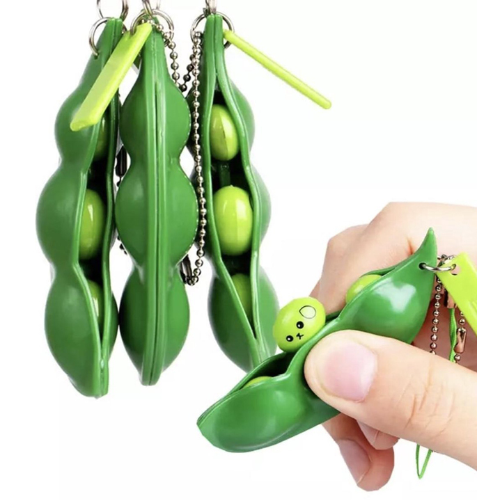 Diese Edamame-Schlüsselanhänger mit dem niedlichen Gesicht in der Bohne in der Mitte sind ein toller Spaß zum Fummeln. Sie können diese Magic Fidget Green Beans von Jono Toys ganz einfach an Ihrem Schlüsselbund, Rucksack oder sogar Ihrem Handy befestigen. Geeignet für Kinder ab 5 Jahren.