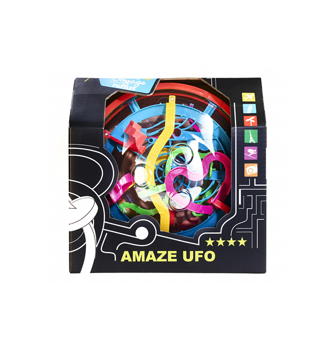 Enjoy your space journey with this Amaze UFO. Go from #1 to #99. Halfway through (at #45) you may take a break! Maneuver the metal ball through the 3D labyrinth with ramps, platforms, spirals, moving parts, stairs, etc. This mini is perfect for travel. It contains no loose parts, so nothing can get lost. For ages 7+.