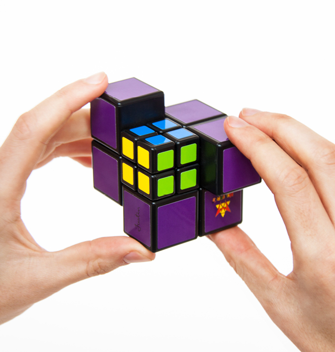 Pocket Cube is a brainteaser from Recent Toys. A Cube inside a Cube makes it extra difficult. This new puzzle by Justin Eplett features a cube in the corner of the cube. As a result, the cube does not behave like a 2x2x2, but rather like a 3x3x3.