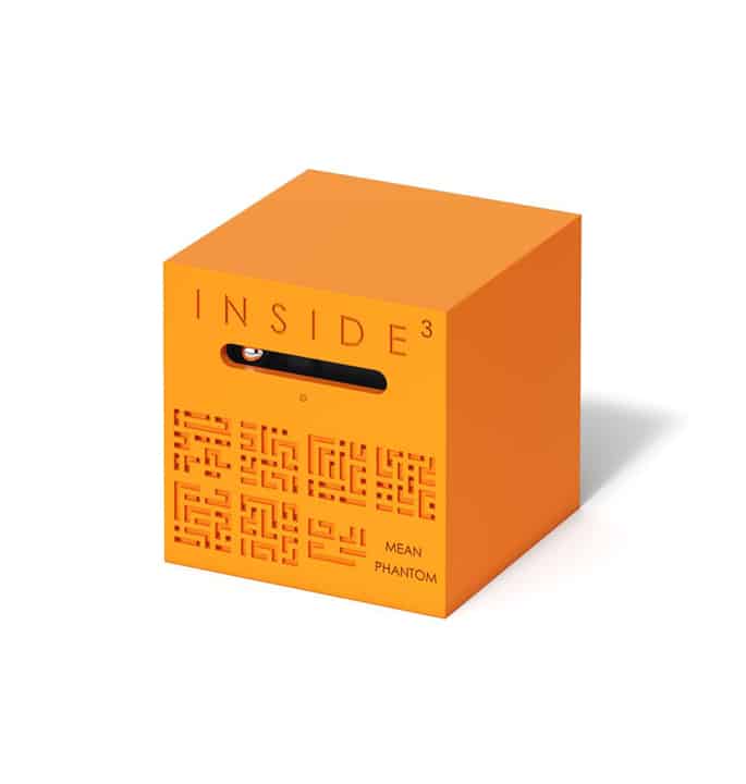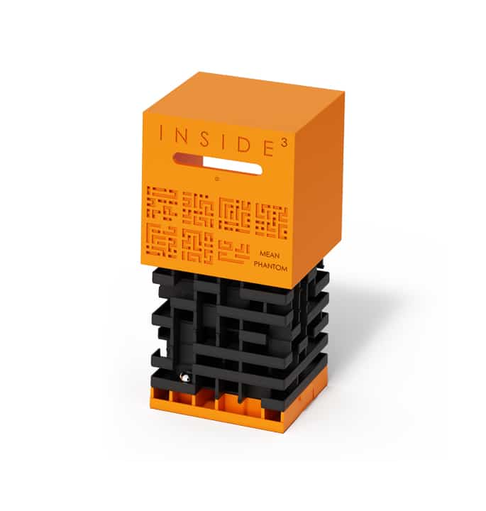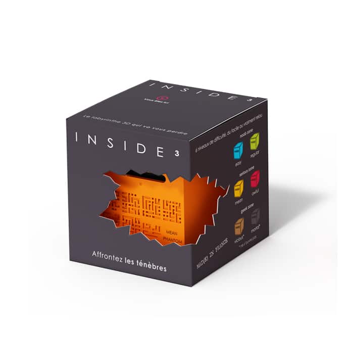 This cube contains a second marble (le phantom). No easy cube here. If you are not yet familiar with the INSIDE puzzles, start with the noVICE range or the 0 series first. ‘The Mean’ & ‘the Awful’ are difficult, but they can be opened. It is a very long maze and very complicated. With 7 trays of labyrinths to cross, on the other hand, they contain a second marble, walled up alive in a forgotten room of the labyrinth…. This ghost haunts the cube and makes the player’s life very difficult.