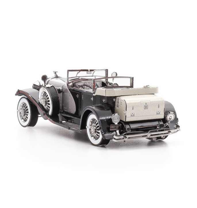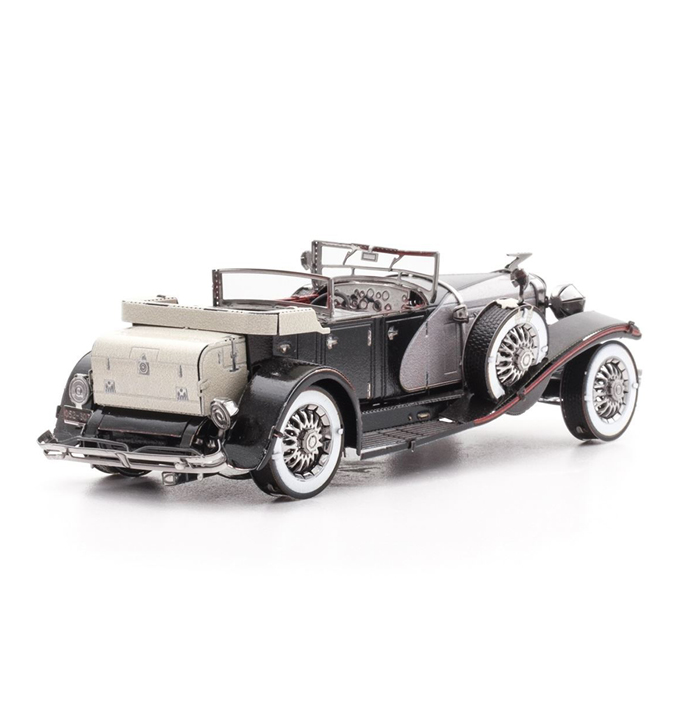 Duesenberg cars were known for their luxurious interiors and beautiful design. Often known as the Supercharged Version, the Deusenberg SJ could accelerate lightning fast for its time. With this model kit, you will recreate this unique vehicle yourself. The thin metal sheets are precision laser cut. You fold the parts together yourself without glue.