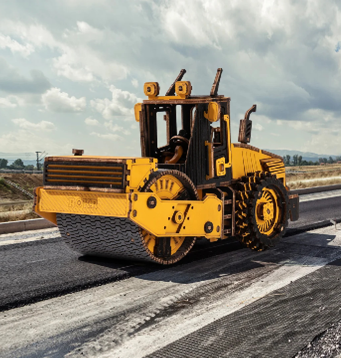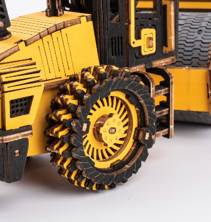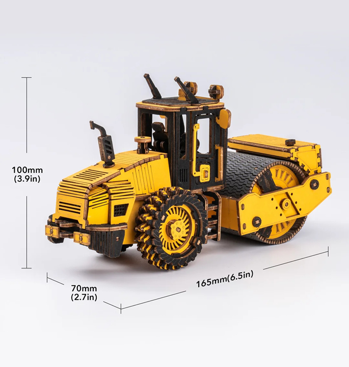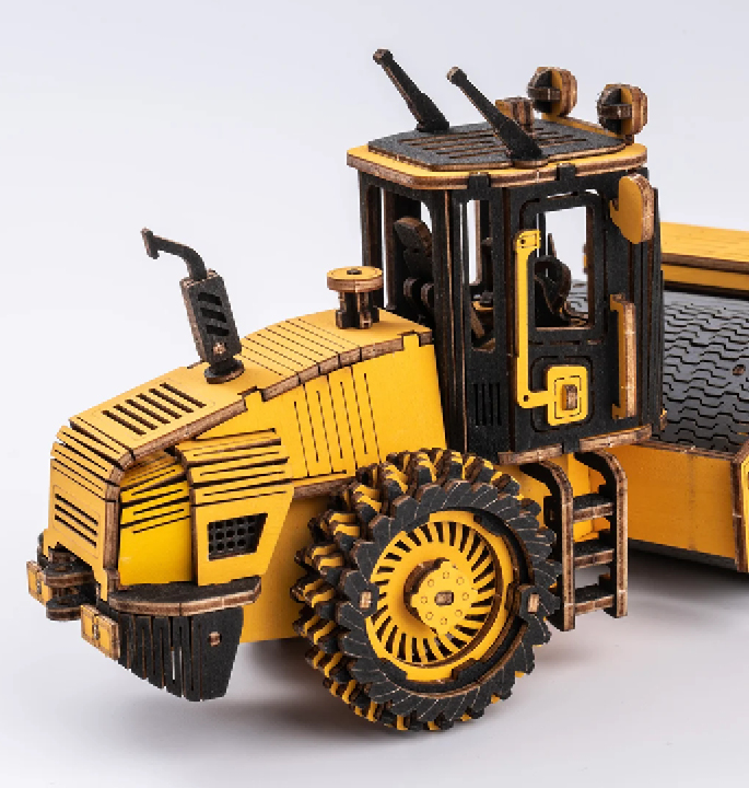 Build a Road Roller model with your own hands. This model is designed based on real road work machines. It is a great 3D wooden puzzle toy for fans of vehicles and mechanics. Road machines are impressive. One of the most impressive is still the waltz. In reality, such a crushing roller for asphalt weighs up to about 14,000 pounds. Fortunately, this wooden model building from ROKR does not weigh as much, but is just as impressive. Especially in terms of details: mirrors, exhaust, grille, steps and, of course, the true-to-life round roller. This miniature kit is kept in road worker yellow. A nice eye-catching color so that all traffic sees it in a timely manner. And. it also stands out nicely as a decoration on your closet as a result.
