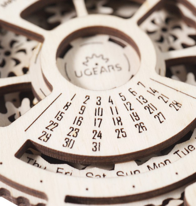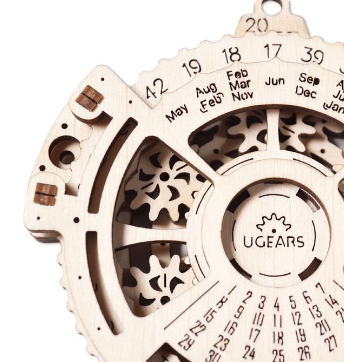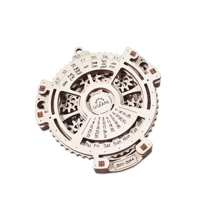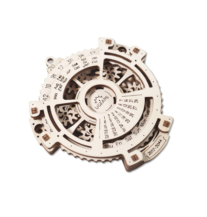 Never lose track of time again. This trendy Date Navigator from UGears is made of wood and has a stunning Steampunk planetarium mechanism on the inside. You can find out, by setting the year and month, which day of the week the date important to you falls on. The census goes up to the year 2044.
