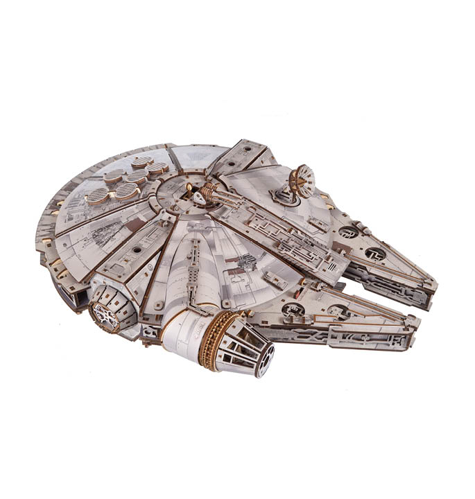 With this wooden 3D model of the Millennium Falcon you bring a piece of movie historyinto your home. It is a real eye-catcher for any Star Wars fan!