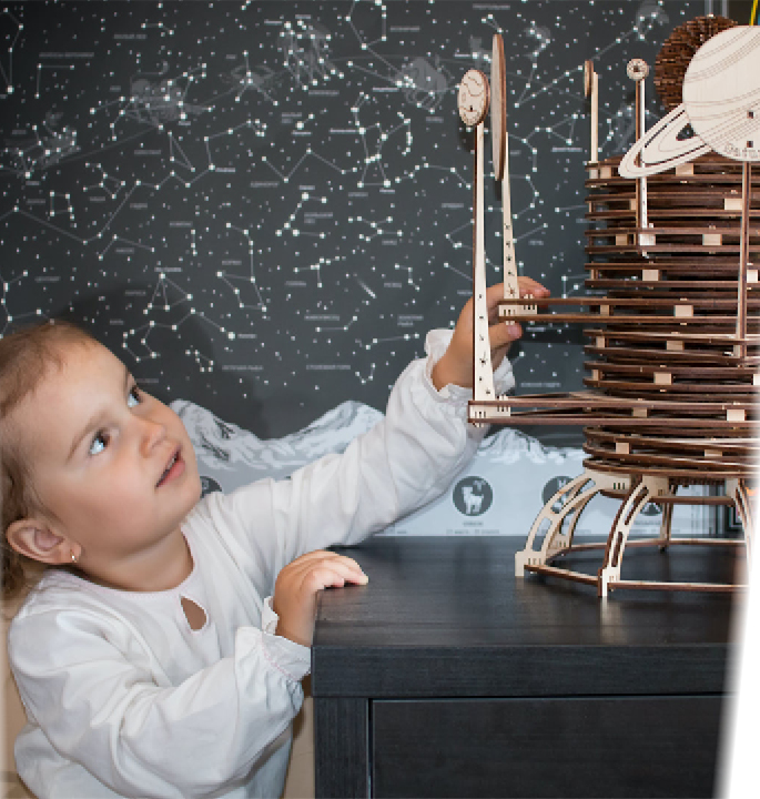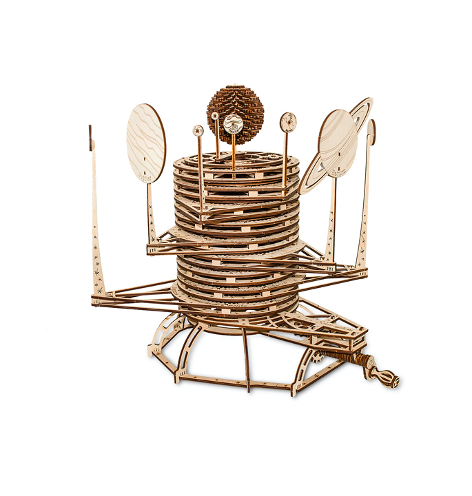 The planetarium mechanical educational 3D puzzle to assemble by yourself. The set contains 534 parts to build a mechanical simulator of the solar system. The planetarium is super easy to assemble without glue and very suitable for children. This educational science kit with 8 planets introduces children to the world of astronomy.
