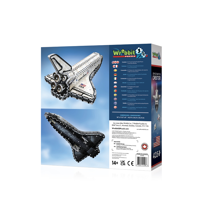 3.. 2.. 1.. ready for take off? Land this 435-piece 3D puzzle of the beloved Orbiter space shuttle in your home. The thrill of scientific exploration, international cooperation and the promise of the ultimate frontier will be yours when you build this 3D puzzle replica. One of our more accessible 3D puzzles for a fun family experience.