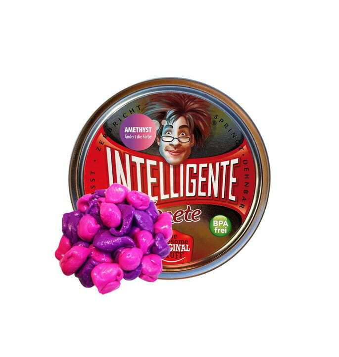 At higher temperatures, the intense purple loses its brightness and transforms to a vibrant pink. The Intelligent putty stretches like a gum ball, bounces like a ball and tears as easily as paper. This putty is packaged in a beautiful metal tin.
