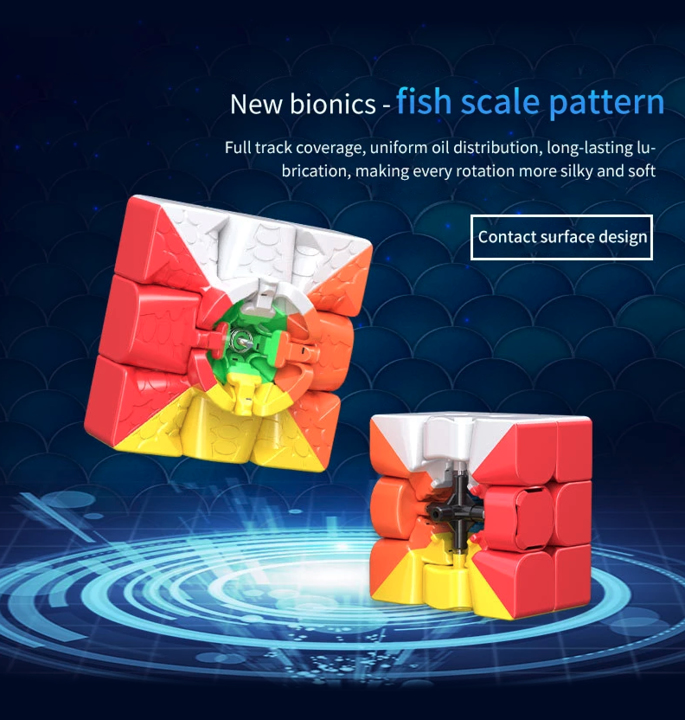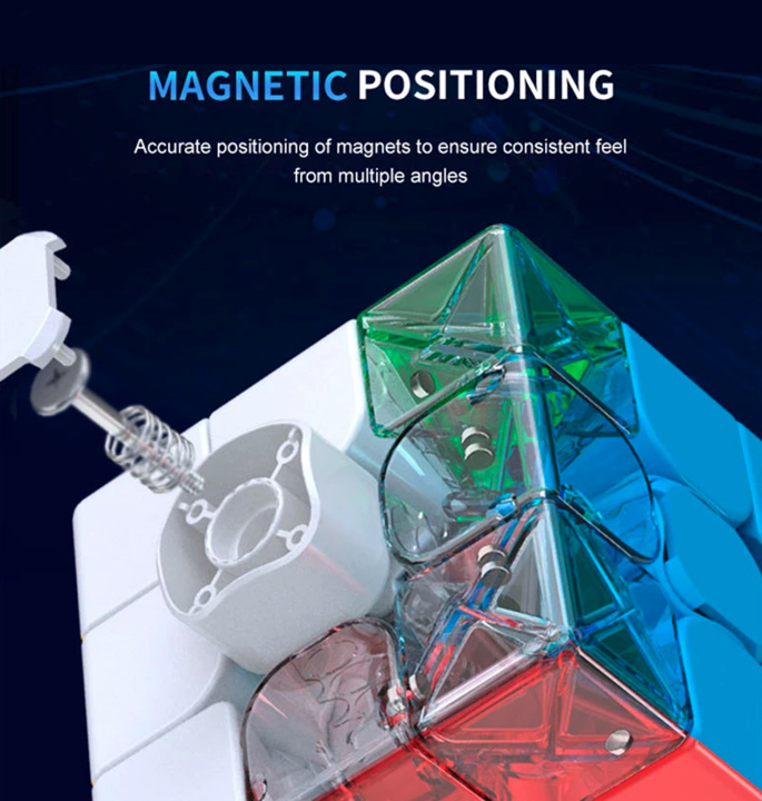 This cube has an interchangeable center cap and spring system so you can personalize the look and feel, this only applies to the 3×3!