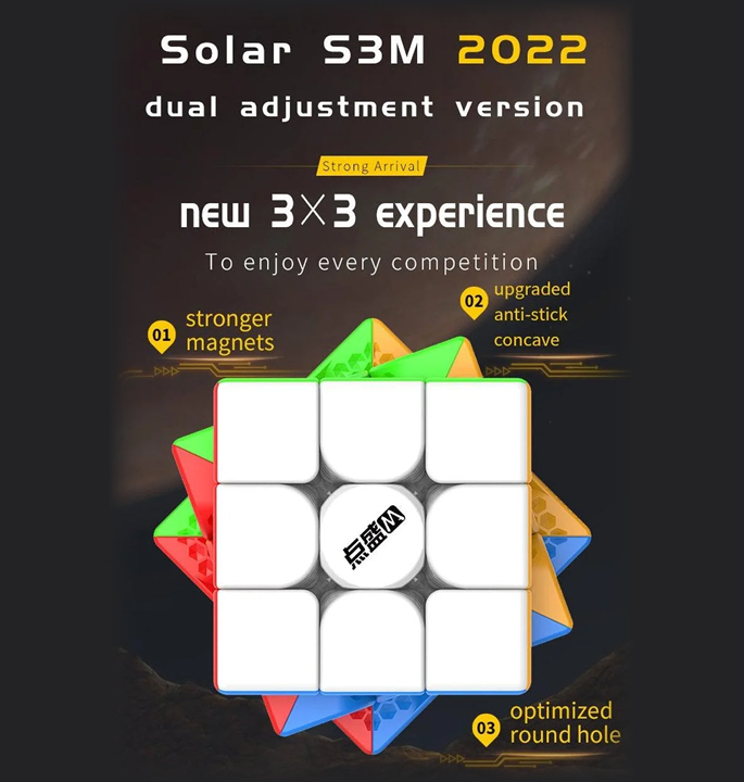 The DianSheng Solar S3M 2022 3×3 is a great speedcube at a great price. It comes with a screwdriver to adjust the tension and has a compression adjustment mechanism that you can adjust by hand!