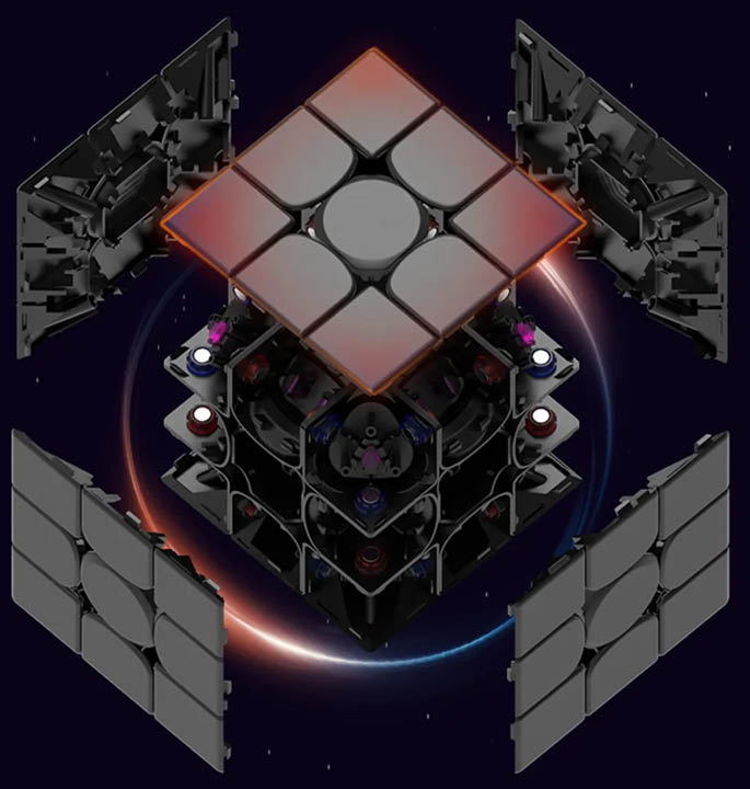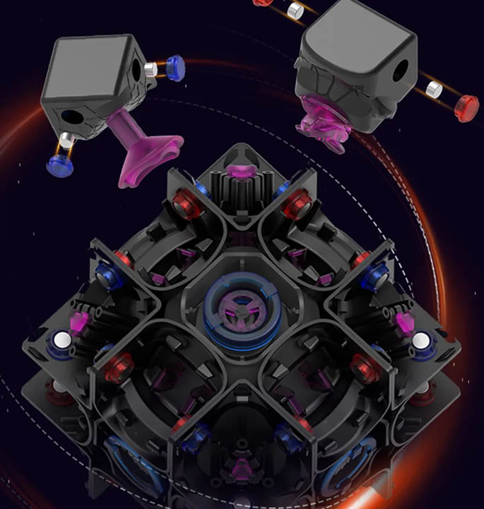 This is the 2023 leading 3×3 cube designed by DianSheng. The innovative Diansheng MS3R 3×3 is fully customizable, thanks to a revolutionary manually customizable core that allows two different core configurations. One of these configurations allows for tighter movements, while the other provides a looser feel. In addition, the voltages can be adjusted manually, ranging from 1 to 5. The Diansheng MS3R 3×3 UV Black has a glossy appearance and improved grip.
