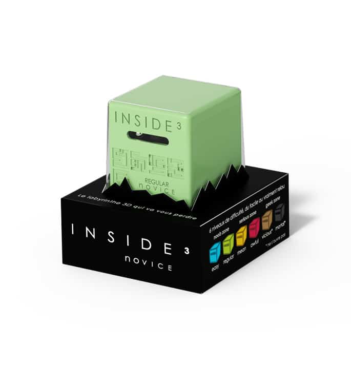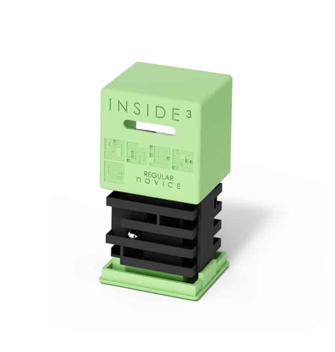 Das Regular noVICE ist ein einfacher Würfel, aber es ist bereits eine echte Reise durch den Raum. Sie müssen mehrmals nach oben und unten gehen und die Ebenen wechseln. Das Labyrinth ist einfach, aber es ist der Beginn des Abenteuers im Herzen der Dunkelheit. Das reguläre noVICE ist ein kleineres und leichter zugängliches Sortiment mit fünf Fächern zum Überqueren. Das noVICE ist eine gute Möglichkeit, INSIDE3 zu erkunden.