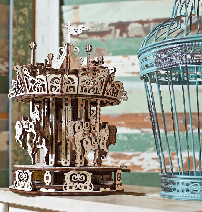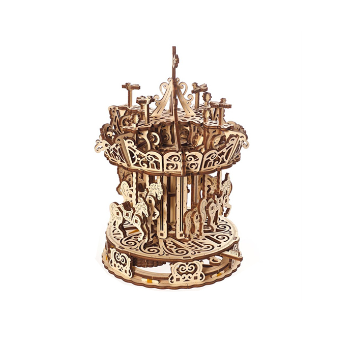 Rond en rond en terug naar waar het allemaal is begonnen… Maak een reis naar je jeugdherinneringen met het mooie nostalgische model van UGears; De Draaimolen. Wat de technische aspecten betreft, is de UGears Draaimolen gebaseerd op dezelfde principes als de meeste mechanische modellen van UGears,