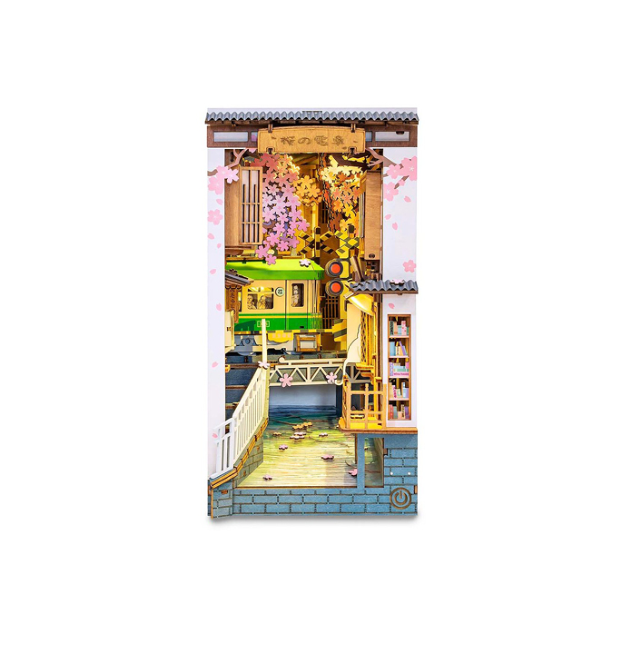 Laten we een ritje maken met een Japanse trein en genieten van de straten van Tokio in de lente! Deze Robotime-Rolife Sakura Densya Book Nook Shelf Insert TGB01 is een 3D houten puzzel miniatuur huis kit die je met je eigen handen zou kunnen bouwen. Nadat dit kunstwerk is voltooid, zal het in het voorjaar een prachtig tafereel van de straten van Tokio laten zien. Deze boekensteun zal een geweldig huisdecor zijn voor een boekenplank of een andere ruimte in de kamer. Het ziet er ook geweldig uit als je het in het donker zet met de warme lichten aan. Wat nog belangrijker is, deze boekensteun kan je fantasie helpen creëren en creativiteit vergroten, wat een perfect praktisch cadeau is voor kinderen en volwassenen.
