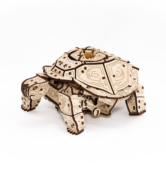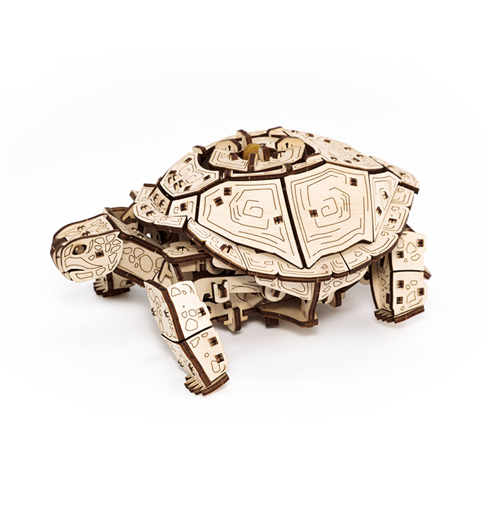 Deze charmante modelbouw bevat 269 houten onderdelen die je eenvoudig zonder lijm in elkaar kunt zetten. Het geheim achter de beweging ligt in de rubberen motor, waardoor je schildpad echt kan wandelen! Net als zijn echte soortgenoten dus. Laat je verrassen door de charme en het vakmanschap van dit mechanische model. De wereld van modelbouw is nog nooit zo leuk geweest met deze prachtige set van Eco Wood Art. Breng je eigen schildpad tot leven!