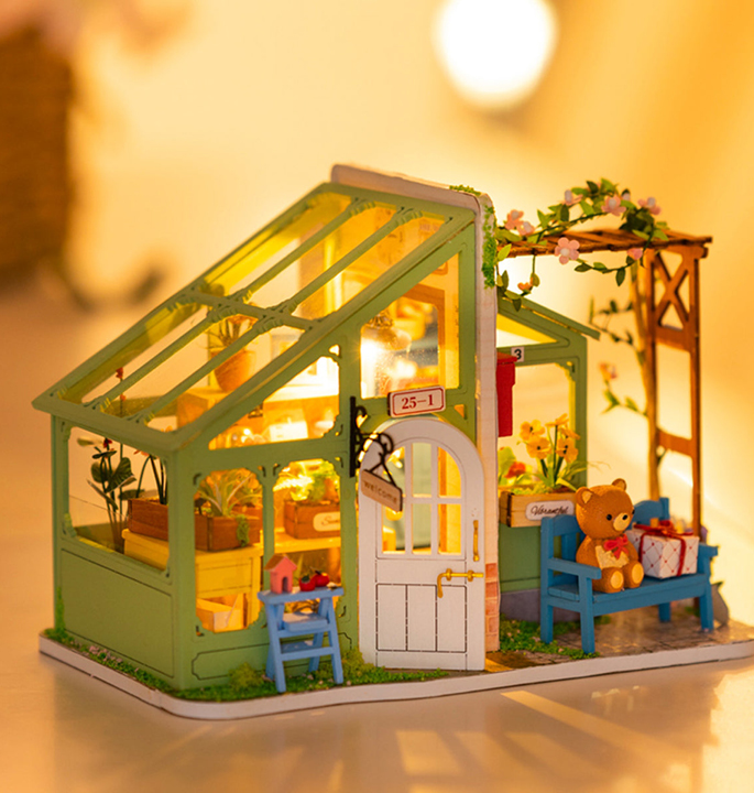 Robotime Spring Encounter Flowers is een prachtig miniatuur bloemenstalletje. Je zult genieten van de details – bloemen, lichten en andere schattige minimeubels met je eigen handen maken. Je zult een ontspannen tijd hebben om een kunstwerk af te werken!