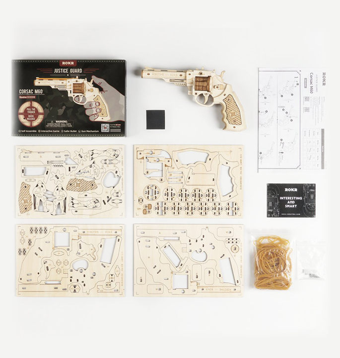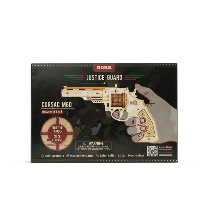 Justice Guard is een meer interactieve serie waar mensen van kunnen genieten. De Corsac M60 is ontworpen in de vorm van een revolver, met real-action release en veiligere kogels. De eenvoudig te monteren structuur maakt het een perfecte keuze voor je speel tijd. Stap voor stap beleef je een tevreden modelbouw ervaring met het klassieke gevoel van het wilde Oude Westen.