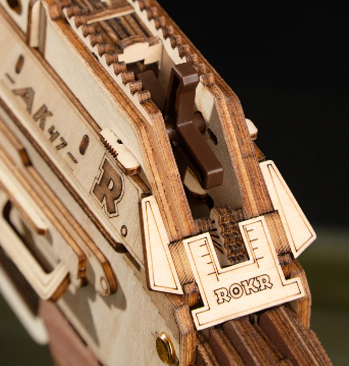Een realistische simulatie van een aanvalsgeweer. Met dit unieke bouwpakket kun je zelf de spanning ervaren van het in elkaar zetten van je eigen geweer. Compleet met ingewikkelde houten onderdelen, maak je een levensecht ontwerp. Uiteraard is het een speelgoedmodel en wordt er dus met met elastiekjes geschoten. Perfect voor kinderen en volwassenen! Dit speelgoed biedt een boeiende en uitdagende bouwervaring die resulteert in een prachtig eindproduct. Bereid je voor op uren plezier en avontuur met dit houten modelbouwpakket! Dit bouwpakket bestaat uit 315 onderdelen.
