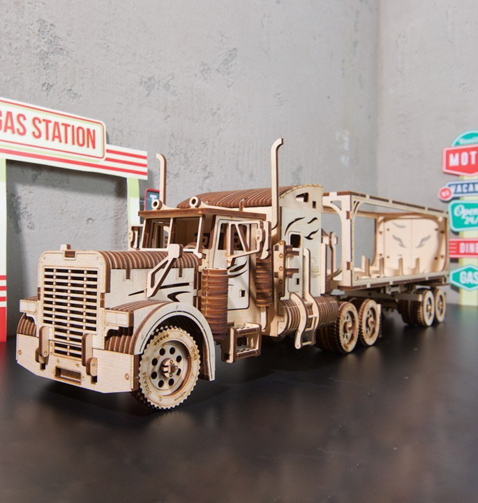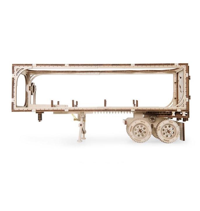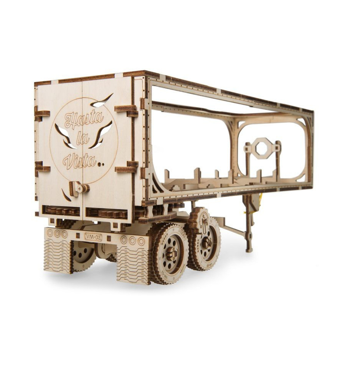 Het VM-03 modelbouw set Truck Trailer voor Heavy Boy is gemaakt van duurzaam geproduceerd, hoogwaardig hout en bevat alles wat u nodig heeft voor zijn montage. Het voorsnijden is zorgvuldig gedaan; elk van de onderdelen komt gemakkelijk uit de multiplexplaten. Bouw zonder lijm – zoals alle – modellen volgens de stap-voor-stap, echt makkelijk te volgen handleiding. De montage van de trailer bestaat uit verschillende fasen. Eerst bouw je de kleinere onderdelen om de grote blokken te vormen: de wielbasis, de carrosserie en de geautomatiseerde transportunit – die samen het hele model compleet maken.