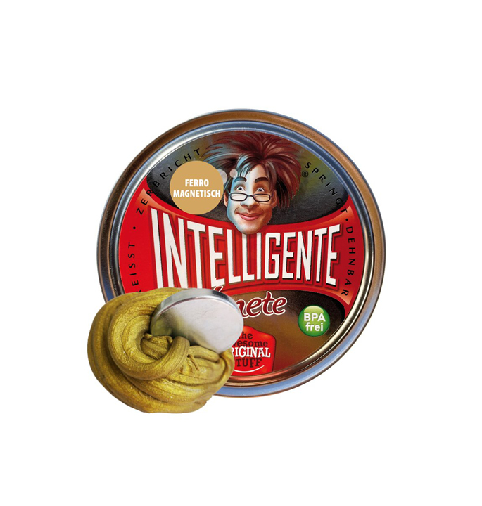 Experimenteren op hoog putty-niveau! De Ferromagnetische putty slijm bevat minuscule metaaldeeltjes. Met de meegeleverde magneet komt hij echt tot leven. Er zijn geweldige experimenten mogelijk, de putty volgt de magneet en wordt zelfs zelf magnetisch, zodat kleine voorwerpen zoals paperclips door de putty worden aangetrokken. De Intelligente putty rekt uit als een kauwgombal, stuitert als een bal en scheurt zo gemakkelijk als papier. Deze putty zit verpakt in een mooi metalen blikje.