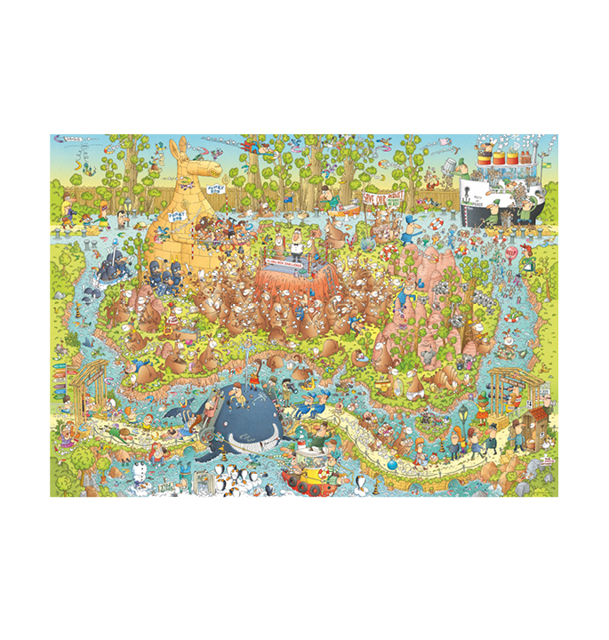 Heye Australian Habitat Puzzel van 1000 stukjes. Weer een grappige plaat uit de Funky Zoo serie met dit keer een Australisch deel van een dierentuin vol kangoeroe’s en koala’s. Cartoon artiest Marino Degano, heeft met zijn Funky-Zoo serie iets speciaals gedaan: de verschillende Funky-Zoo puzzels kunnen in elke combinatie naast elkaar gelegd worden. Zo kan iedereen zijn eigen dierentuin samenstellen!