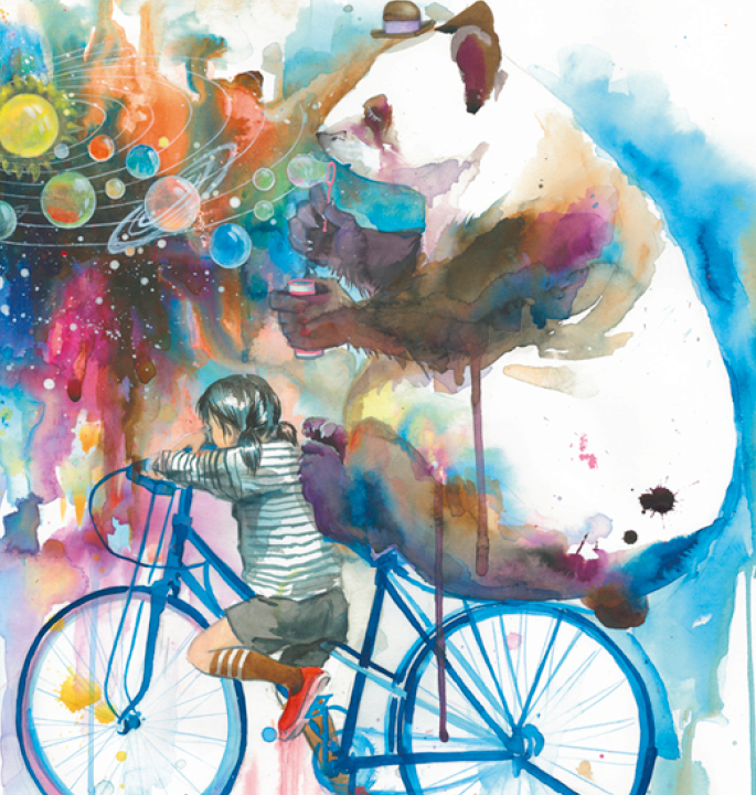 Heye Universe Creator puzzel van 1000 stukjes. Op deze puzzel zie je een prachtige aquarel van een jongen een een pandabeer op de fiets. De Heye-puzzels zijn ongelooflijk gedetailleerd en kleurrijk. De puzzels kunnen keer op keer in elkaar worden gezet en weer uit elkaar worden gehaald voor vele uren speelplezier, maar ze kunnen ook worden ingelijst en opgehangen als decoratie.