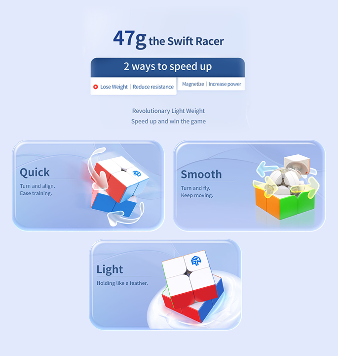 De GAN 251 V2 is een niet-magnetische, verstelbare 2×2 van GAN. Dit is een lichtgewicht, snel draaiende speedcube met een matte buitenkant en de klassieke, stickerloze heldere tinten van GAN. De cube weegt maar 47 gram en is 50 mm groot. Inclusief een aanpassings-tool.